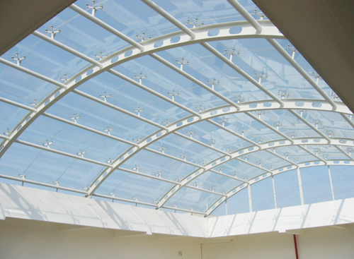 异型阳光棚简称钢结构雨棚是一种适宜各种环境的建筑方案,必定引建筑结构的关注,如历史上的混凝土和钢材,在70年代以来,以欧美等发达城市为核心开展兴起的新式异型钢结构雨棚,也是如此,用这种优质的雨棚,辅以柔性或者钢性支持,可绷成一度曲率互反,有定然刚刚度和拉力的结构体系。这种全新的建筑结构方式,集建筑学、结构力学、材料学与细致化工、电脑技能等为一体,钢结构雨棚拥有以下优良的特性: